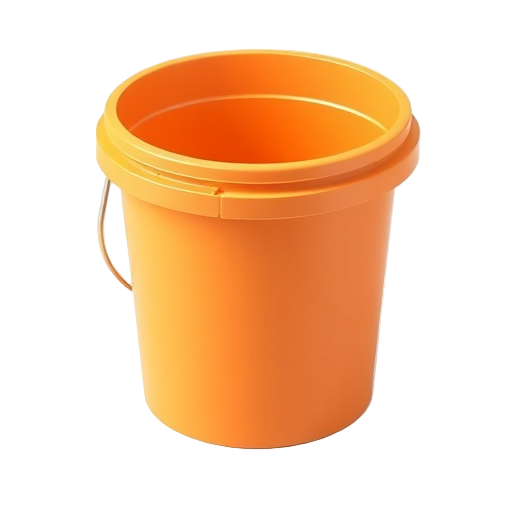 A standard 5-gallon plastic bucket used for storage, hauling, painting, gardening, or general utility purposes.