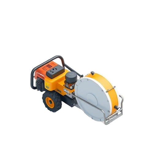 A concrete saw in the heavy equipment context is typically a walk-behind or self-propelled gas/diesel-powered machine used for cutting concrete slabs, roads, and masonry on construction sites.