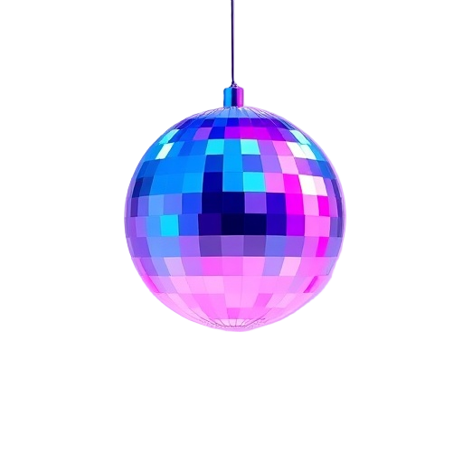 A disco ball is a spherical mirror ball used in lighting setups to reflect light beams and create dynamic disco effects at parties and events.