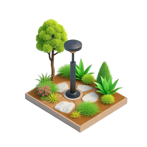 A landscape light is a single outdoor lighting fixture, such as a pathway light, spotlight, or in-ground well light, used to illuminate gardens, walkways, or architectural features in landscaping.