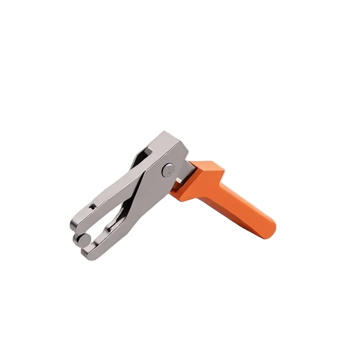 A handheld leather punch tool used in crafting to create holes in leather, textiles, and other materials for leatherworking projects.