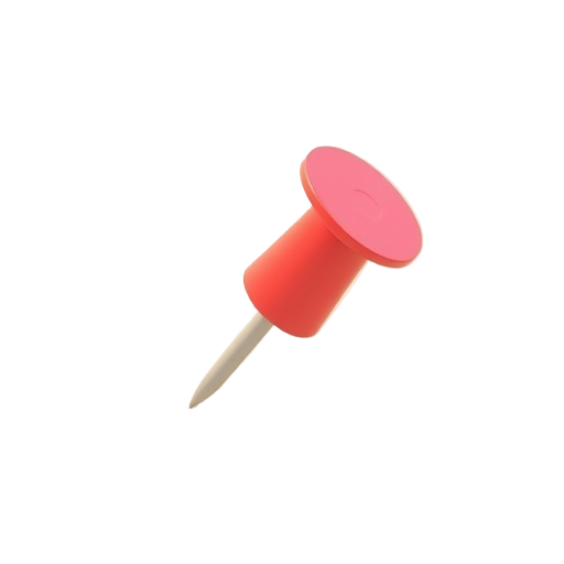 A thumbtack is a small office supply pin with a broad, flat head and a sharp steel point used for pinning papers or memos to bulletin boards.