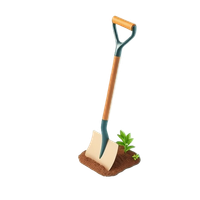 A shovel is a common digging tool with a long handle and broad blade used for moving soil, dirt, or snow in gardening and yard work.