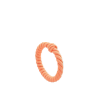 A hair tie is a small elastic loop used in personal care to secure hair into ponytails or buns.