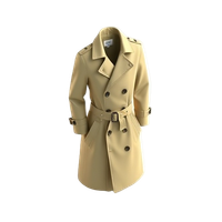 A trench coat is a classic double-breasted waterproof outerwear garment typically made from gabardine or cotton, featuring a belt and storm flap, designed for protection against rain and wind.
