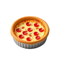 Chicago deep dish pizza is a thick, hearty pizza baked in a high-sided pan, typically served at restaurants as a shareable pie for 2-4 people.