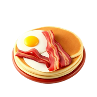 The Denny's Original Grand Slam is a classic full breakfast platter featuring two pancakes, two eggs, two bacon strips, and two sausage links.