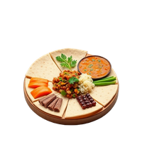 An Ethiopian Injera Platter is a traditional shared meal featuring injera flatbread served with various stews, lentils, vegetables, and meats in a fast food or restaurant setting.