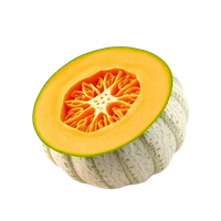Japanese premium cantaloupe grown in Hokkaido with perfect symmetry and sweetness.