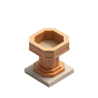 A freestanding or pedestal-mounted basin used in Christian churches for baptism ceremonies, typically made from wood, metal, or stone.