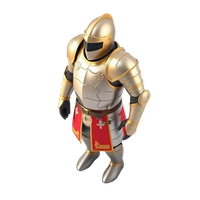 A medieval suit of armor is a full-body protective ensemble of steel plates worn by knights, typically featuring a helmet, breastplate, arms, legs, and gauntlets.