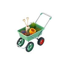 A garden cart is a wheeled utility vehicle designed for transporting garden plants, tools, soil, and supplies around yards or gardens.