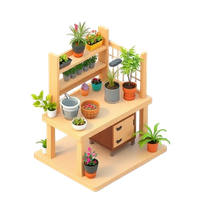 A potting bench is a sturdy outdoor workstation table designed for gardening tasks like repotting plants, with features such as shelves, cabinets, and sometimes sinks.