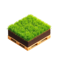 Sod is pre-grown grass with roots and soil, sold in rolls or pallets for quick lawn installation in gardens.