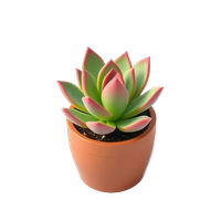 A succulent is a low-water garden plant with thick, fleshy leaves that stores moisture, commonly sold in small pots for home or garden use.