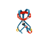 A climbing harness is a sports safety device worn around the waist and thighs to secure climbers to ropes and protection via a belay loop and gear loops.