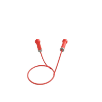 A jump rope is a basic sports equipment item consisting of a cord with handles used for cardio fitness training and skipping exercises.