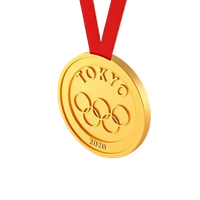 An official medal awarded to a gold medalist at the Tokyo Olympics.