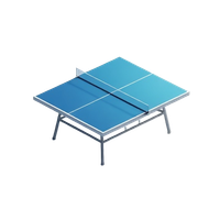 A ping pong table is a standard 9x5 foot table tennis surface used for recreational sports play, typically foldable for home use.