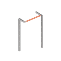 A pull-up bar is a sports equipment device typically mounted in a doorway, on a wall, or ceiling for performing pull-up exercises to strengthen the upper body.