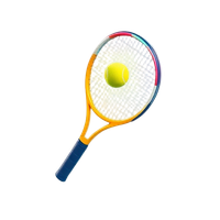 A tennis racket is a sports implement used to strike a tennis ball, typically featuring a strung oval frame attached to a handle.