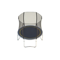 A backyard trampoline is a round or rectangular sports equipment frame with a jumping mat, springs or bungees, and safety enclosure net for recreational bouncing.