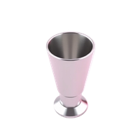 A stainless steel jigger is a double-ended measuring tool used in bartending and dining tableware for precise pouring of liquor in standard sizes like 3/4 oz and 1 1/2 oz.