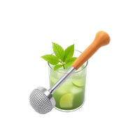A muddler is a tableware dining tool, typically a wooden or stainless steel bar utensil with a textured end used to crush herbs, fruits, or ice in drinks like mojitos.