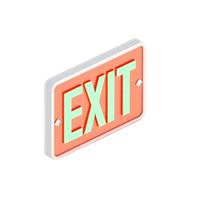 An illuminated LED exit sign used in commercial buildings to mark emergency exits and provide directional guidance during power outages.
