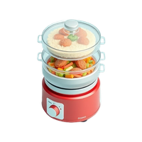A countertop electric food steamer is a kitchen appliance with stackable trays used to steam vegetables, rice, and other foods simultaneously.