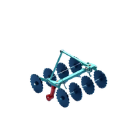A disc harrow is a heavy farm implement with concave discs mounted on a frame, used to till and break up soil for planting.