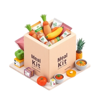A weekly meal kit delivery subscription provides pre-portioned ingredients and recipes for 2-6 servings across 3+ meals, typically costing $50-100 per box for a household of 2.