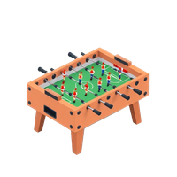 A foosball table is a tabletop soccer game where players use rod-mounted handles to control miniature players and score goals.