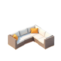 A typical outdoor sofa designed for patio seating, usually made with weather-resistant materials like wicker, aluminum, or rattan with cushions.