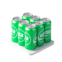 A typical 12-pack of 12-ounce cans of soda (soft drink), the most common retail unit for everyday purchases like provisions.
