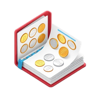 A coin album is a pocket book or binder used in crafts and hobbies for organizing, protecting, and displaying collected coins, typically featuring plastic pages with slots for quarters, dimes, or other coins.