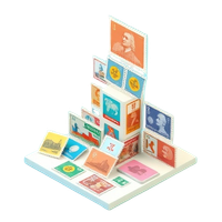 A stamp collection refers to a group of postage stamps gathered by hobbyists, typically consisting of common stamps from various countries and eras.