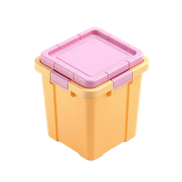 A storage bin is a common plastic container with a lid used for organizing household items like clothes, toys, or garage supplies in closets, shelves, or under beds.