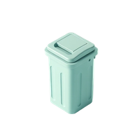 A trash can is a common household container for storing and disposing of waste, typically made of plastic for indoor kitchen or bathroom use.