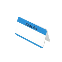 A name tag in office supplies context is a peel-and-stick adhesive label badge used for temporary identification at meetings, events, or offices.