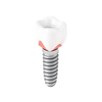 A single dental implant procedure including the implant post, abutment, and crown used to replace a missing tooth.