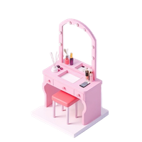 A furniture piece combining a mirror with a desk or table surface, typically used for applying makeup and storing cosmetics.