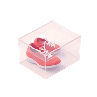 A shoe box is a clear plastic stackable storage container sized to hold a pair of shoes, commonly used for closet organization.