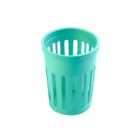 A waste basket in the office supplies context is a small plastic or mesh trash can, typically 3-7 gallons, used for paper waste and small refuse in deskside or office settings.