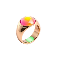A mood ring is a novelty jewelry piece with a thermochromic stone that changes color based on body temperature to indicate mood.