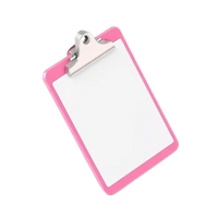 A basic plastic clipboard used in offices, schools, and field work to hold papers securely while providing a firm writing surface.