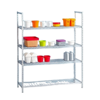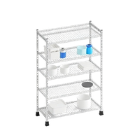 A typical shelving unit for containers and storage is a multi-tier wire rack used for garage or household organization, commonly 4-5 shelves with heavy load capacity.