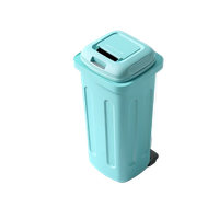A trash can is a common household container for storing and disposing of waste, typically made of plastic for indoor kitchen or bathroom use.