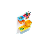 A wall-mounted storage container or organizer used for holding and organizing household items, tools, or supplies in garages, closets, and rooms.