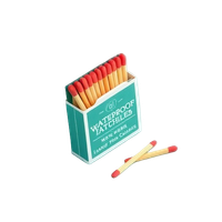 Waterproof matches are stormproof fire starters designed for outdoor camping, with water-repellent coatings and cases that ignite even when wet, typically sold in kits of 25-160 matches.